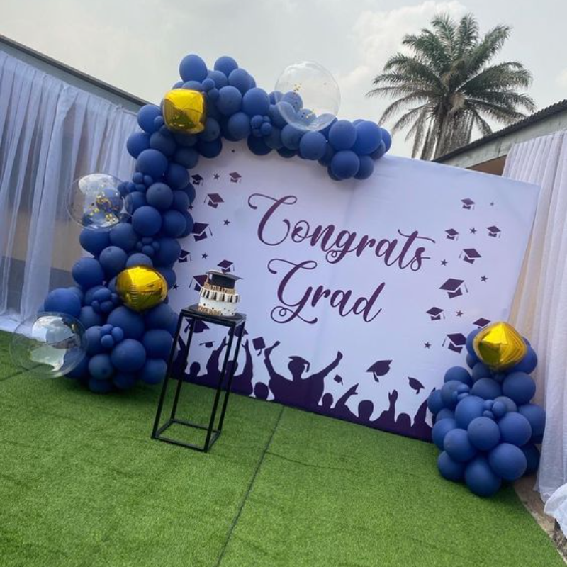 Every graduate has a unique story, and we believe their celebration should be just as unique. We offer customized decoration themes that can be tailored to reflect the graduate’s personality, achievements, and future aspirations. Whether you want a classic black and gold theme, a school colors tribute, or something more creative and personal, we’re here to bring your vision to life. From banners and balloons to centerpieces and photo backdrops, every detail is designed to enhance the celebratory atmosphere.